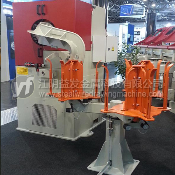 象鼻式收線冷卻方式分為自冷卻與水冷卻兩種,收線方式有普通與梅花型兩種。通常低碳鋼絲采用自冷卻普通型收線,速度≤30M/S,高碳鋼絲與彈簧鋼絲應該采用梅花型水冷卻,收線速度≤12M/S