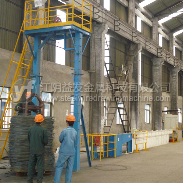 放線架是將原料無動力(被動放出),粗線(?8mm)以上通常采用“一”字式放線架,優(yōu)點(diǎn)在于放線不停車、操作高度較低比較安全。中線(≤6.5mm)推薦采用液壓式高架放線,優(yōu)點(diǎn)在于節(jié)約場地、放線不停車、高度達(dá)到9米以上時亂絲非常少;但是對于這個直徑的高碳鋼絲而言,鴨嘴式放線架雖然使用場地比較大,效果也可以的。細(xì)絲的放線一般用上抽式放線架,尤其對于退火后的細(xì)絲,就必須使用一些特殊的裝置才能確保亂絲少。工字輪放線是*好的方式,但是因?yàn)橛猛镜南拗疲@種方式不能全部使用。